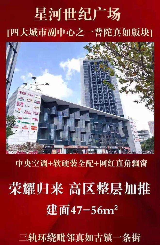项目为区域标志性大盘星河世纪城的商办配套部分,集商业公寓写字楼于一体的综合建筑体,项目旁边就是上海西站直线距离约800米,上海西站是集铁路、城市轨道交通、城市公交为一体的全新现代化交通枢纽,是配合普陀区真如上海城市副中心建设以及长三角大都市交通圈建设的重要举措之一!