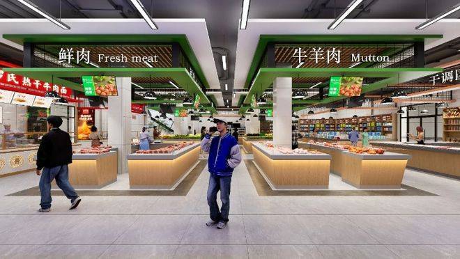 全方面业态规划,蔬菜水果、水产海鲜、牛羊猪驴肉、家禽类鸡鸭鹅和禽蛋类、熟食杂货干货特产类等等,全方位服务铺展开来!