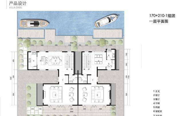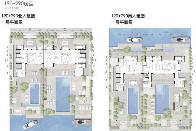 北入户的190+290房型,一层朝南直面庭院和泳池
