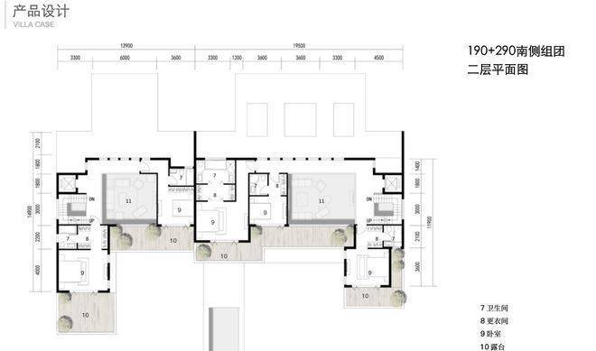 二层都是套房设计+露台+客厅挑空,190的二层是双套房、290的二层是三套房。