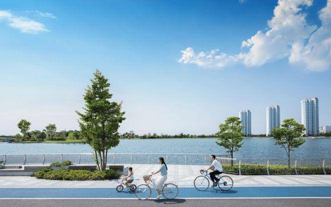 闲暇时分,下楼就能来一场环湖4km亲子骑行,一路上湖光天色尽收眼底。
