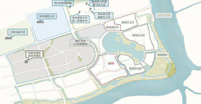 项目西侧是紫竹高新技术园区、北面是交大和华师大校园,以及紫竹基础教育园区,包含幼儿园至高中全龄段教育配套。