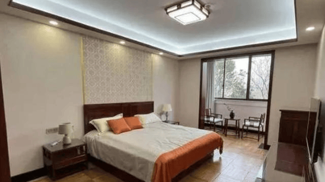 福爱家南翔槎溪苑的主体建筑为一栋五层独栋别墅,总面积达1200平方米,自带庭院花园与500平方米屋顶花园。社区采用“6-8人单楼层家庭式小单元”设计,将16个单人间与7个双人间划分为独立单元,每个单元配备公共客厅、独立卧室、迷你备餐间、阅读书角及适老化浴室。公共客厅内设有大屏幕电视与沙发,长者可在此观看老电影、聊天互动;迷你备餐间配备微波炉、冰箱等设施,方便长者自主准备简单餐食,增强生活参与感。