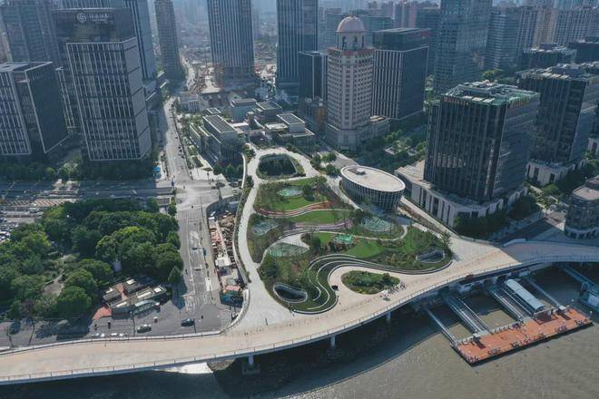 绿地就是修缮了300年商船会馆的文物保护者,建设了黄浦滨江景观花桥,让绿地金融中心与外滩无缝链接,目前景观花桥已经贯通。