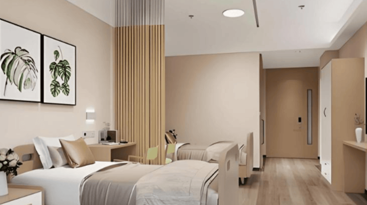 单人间:床位费3500 元 / 月起,独立空间,智能温控,三重紧急呼叫,私密舒适