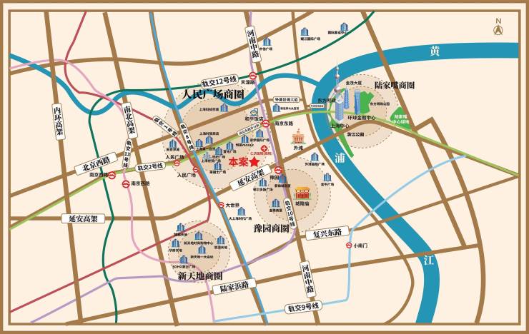 交通配套:轨交:地铁2/10号线南京东路站560米 、1/2/8号线人民广场站890米、10/14号线豫园站510米、8/14号线大世界站930米(14号线在建当中)