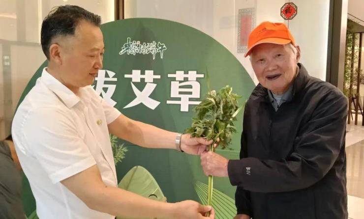 活动中最温馨的环节,莫过于赠送艾草仪式。工作人员为每位长者送上精心准备的艾草。作为端午节的传统象征,艾草不仅寓意驱邪避疫,更承载着对健康长寿的美好期许。长者们手捧艾草,脸上洋溢着幸福笑容,深切感受到社区和家人的关怀。