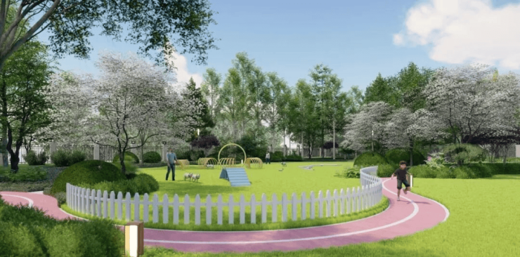 以自然会客厅为核心主景,融入艺术廊架、阳光大草坪、泛会所架空层、健康跑道、儿童乐园等功能场地,构建风景中的社交场。