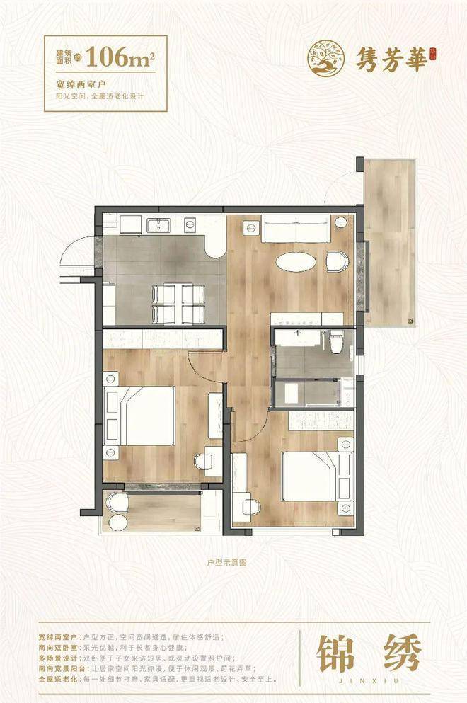 活力长者公寓共有四种房型可供选择,包括50平方米的大开间、70平方米的一室一厅、93平方米的两室(南北)一厅和106平方米的双朝南卧室一客厅,满足不同老年人的居住需求。