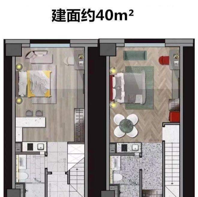 双入户,顾名思义就是把一套产品,设计成上下独立的两处空间,各自配备独立的功能分区,打破常规的产品理念,尽情发挥对空间的想象力。