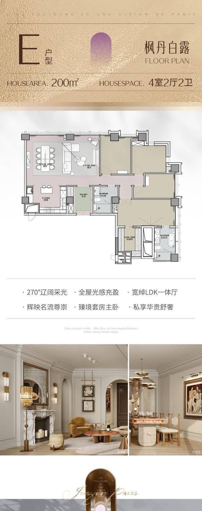200㎡ 4房2厅2卫(枫丹白露主题):总价约1000万元起。
