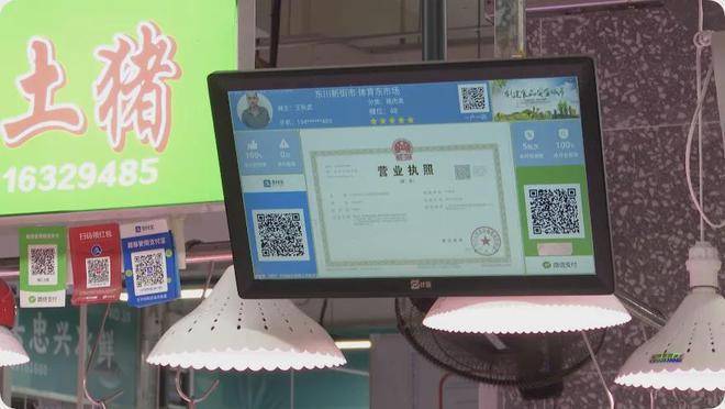 最直观的是,街坊走进市场,抬头就能看见电子大屏幕,上面会展示生鲜菜品抽检的结果等数据。