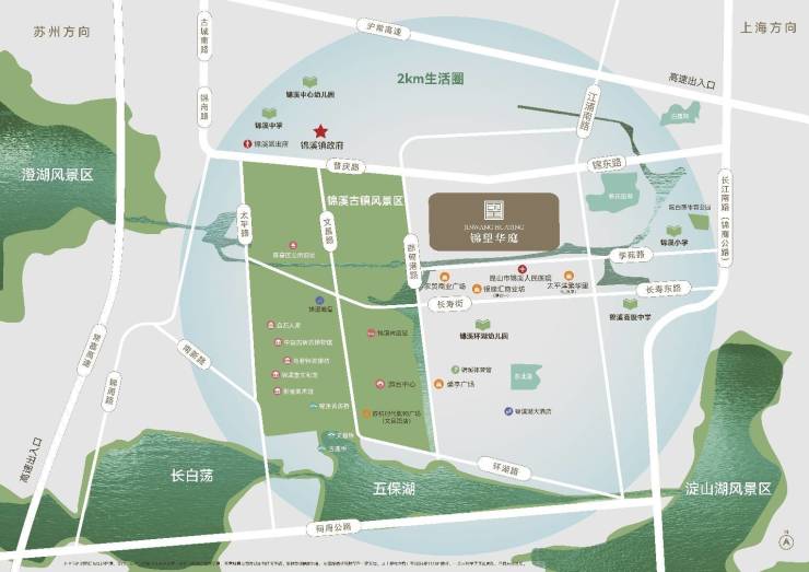 锦溪,地处上海、苏州、昆山三大长三角城市交心位置,地理位置得天独厚,距离上海虹桥约40公里,距离苏州园区约20公里,距离昆山市区约24公里,南北两侧更与三大城市各有接壤,与三大都市圈共享繁华。