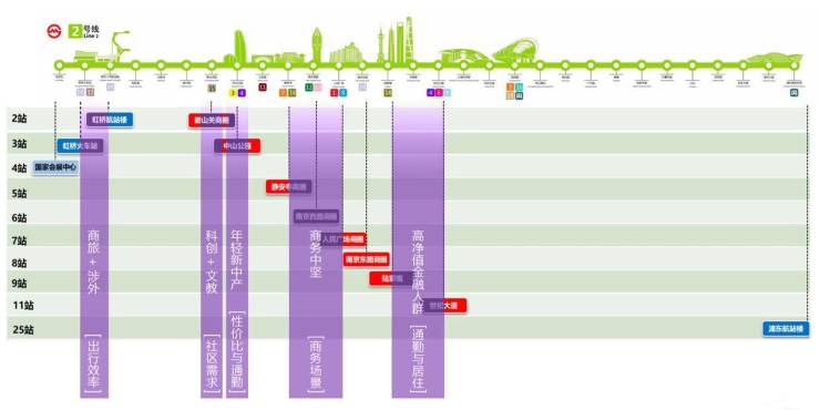 地铁2号线】直线距离北新泾站约200m,威宁路站约800m,东向2站中山公园,4站静安寺,6站人广,9站陆家嘴,直抵浦东国际机场,西向3站虹桥2号航站楼,4站虹桥火车站,是上海名副其实的国际线。(*数据来源于百度地图测量及百度统计)