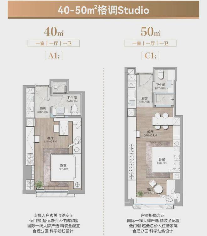 由于公寓较普通住宅 空间组合更加灵活,PARK699在户型上也获得了更多的施展空间: 既有40-50㎡(建面)入门级一房、也有80-100㎡(建面)基础级两房、还有140㎡(建面)旗舰级两房。甚至如果业主有其他需求,它还可以像是施展空间魔术一般,继续灵活组合。