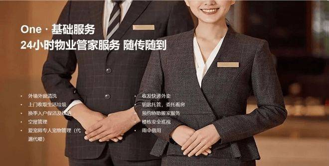 基础物业有和24小时的管家服务,可对接私宴上门服务,机场接送,可空置房管理,宠物带溜带喂,开市客代购,保洁上门收纳,墙体外立面定时清洗等