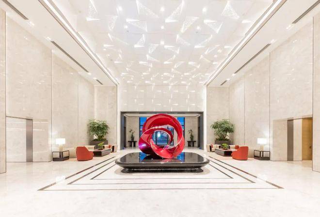 公区石材主材采用雅铂白石材,呈现出自然、纯粹、治愈气息,兼具原生态美感。再配以铜质的线条勾勒,五星级酒店也不过如此。就连灯光、地面线条、沙发桌椅的摆放都要经过精心设计、反复调整,直至最佳角度。