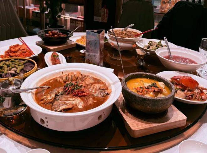 步行 15 分钟:味蕾开启环球之旅,酸辣鲜香的泰式柠檬桂花鱼唤醒食欲,浓油赤酱的本帮红烧肉甜润入魂;【希腊餐厅】的烤羊排佐酸奶酱,地中海风情满溢;【江南宴】的台州沙蒜豆面鲜滑弹润,尽显融合菜精髓。