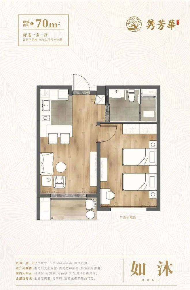 活力长者公寓共有四种房型可供选择,包括50平方米的大开间、70平方米的一室一厅、93平方米的两室(南北)一厅和106平方米的双朝南卧室一客厅,满足不同老年人的居住需求。