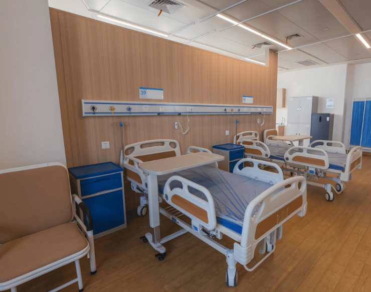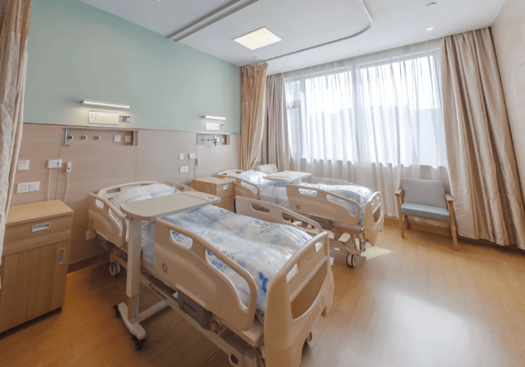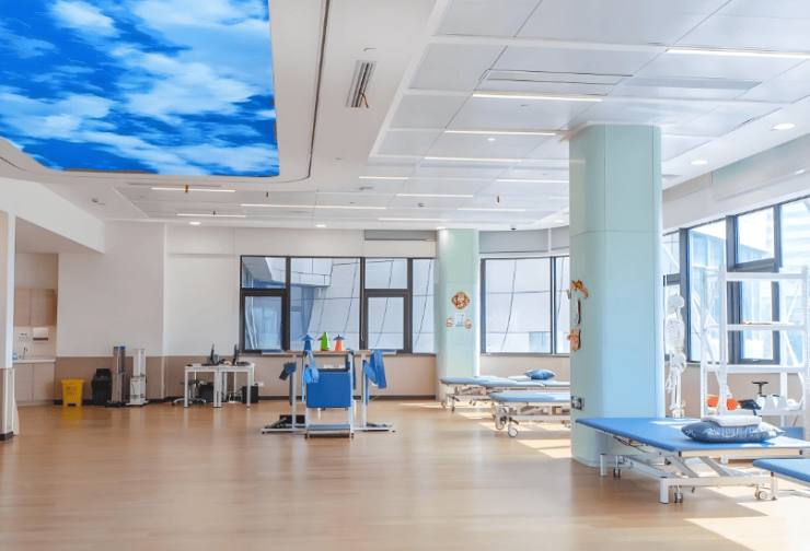 医院康复治疗区域达2500平方米,划分为运动治疗厅、水疗中心、作业治疗厅等10余个专业区域。水疗中心配备多功能水疗池及水中步行训练系统,适用于脊髓损伤患者的减重训练;物理因子治疗区拥有冲击波治疗仪、经颅磁刺激仪等设备,提供非侵入式支持;康复工程室引入3D打印技术定制个性化辅助器具,缩短适配周期。病房设计遵循“3H概念”(疗愈康复+家庭温暖+宾至如归),四人间配备智能监护系统,单人间含独立客厅,公共区域设有屋顶花园、康复花园及景观步道,铺设防滑地面并配置无障碍坡道。