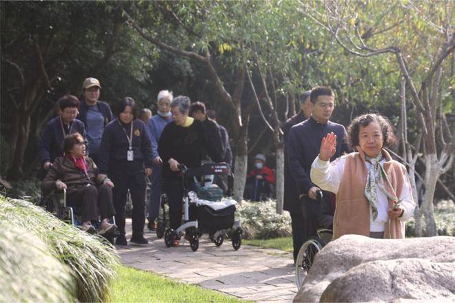 长者们与工作人员相伴漫步,穿行于亭台水榭之间,沐浴温暖阳光,畅叙闲情逸致,一路欢声笑语不绝。相机快门声此起彼伏,将一张张洋溢着幸福的笑脸与这一季的秋意温柔定格。