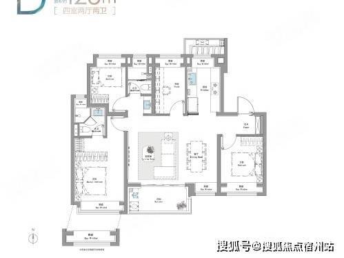 建面约 125-143㎡奢阔四房 :全明通透,多房间灵活改造,可做书房、儿童房或储物间,兼顾家庭互动与私密,适配二胎家庭或改善需求,卧室人字拼地面,尽显质感。