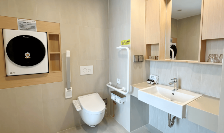 房间配备智能床垫、生命体征监测系统,异常情况自动触发预警;公共区域设置无障碍电梯、防滑地面,确保长者安全。