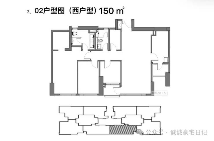 标准层建筑层高3.3米,得房率约77.4%,三梯四户,使用私密性较好。