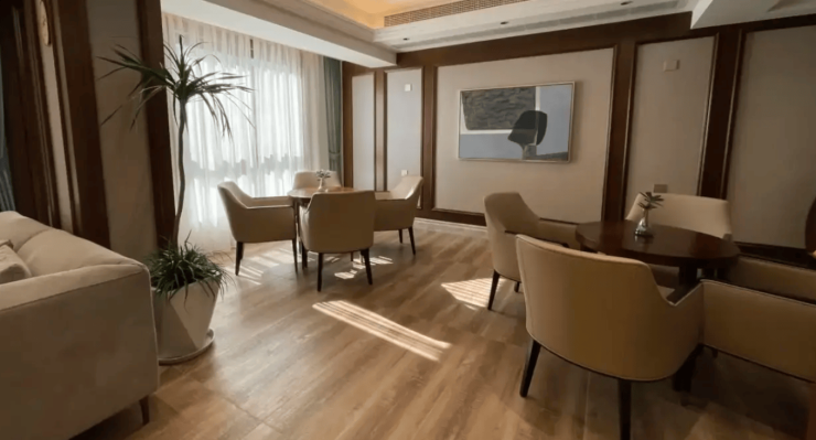 生活照料:全屋采用宜家出口系列家具,配备防滑地板、紧急呼叫系统及智能空气监测设备。套房增设独立客厅、厨房及景观阳台,满足高端需求。