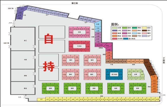 业态分布:净菜、干货、光禽、猪肉、牛羊肉、机面、禽蛋、豆制品、调味、冻品、综合、水果、熟菜、熟食、烘焙、水产、南北货、茶饮、烟酒