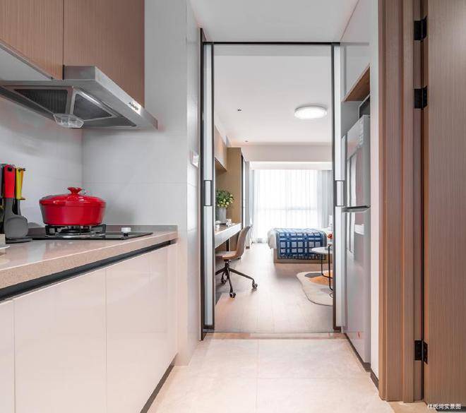 多数普通租赁房收纳空间捉襟见肘,文兰公寓室内储物空间非常多,衣柜也是定制好的。除了阳台,公区也配置了储物柜。