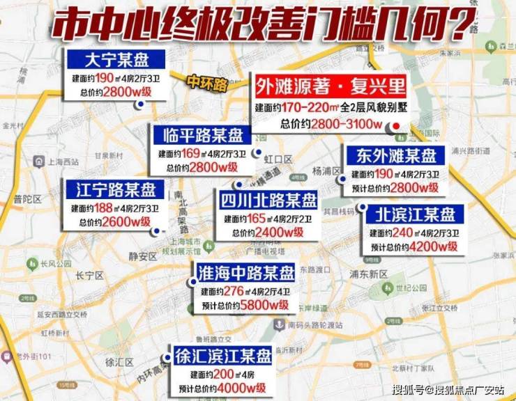 纵观整个中环内热门置业板块,这样的预算大多只能在 静安、虹口或杨浦买到约190m²以内的高层住宅产品, 按照高层住宅普遍约75%的得房率来看, 最多只能拥有套内面积约150m²不到的实际使用面积……