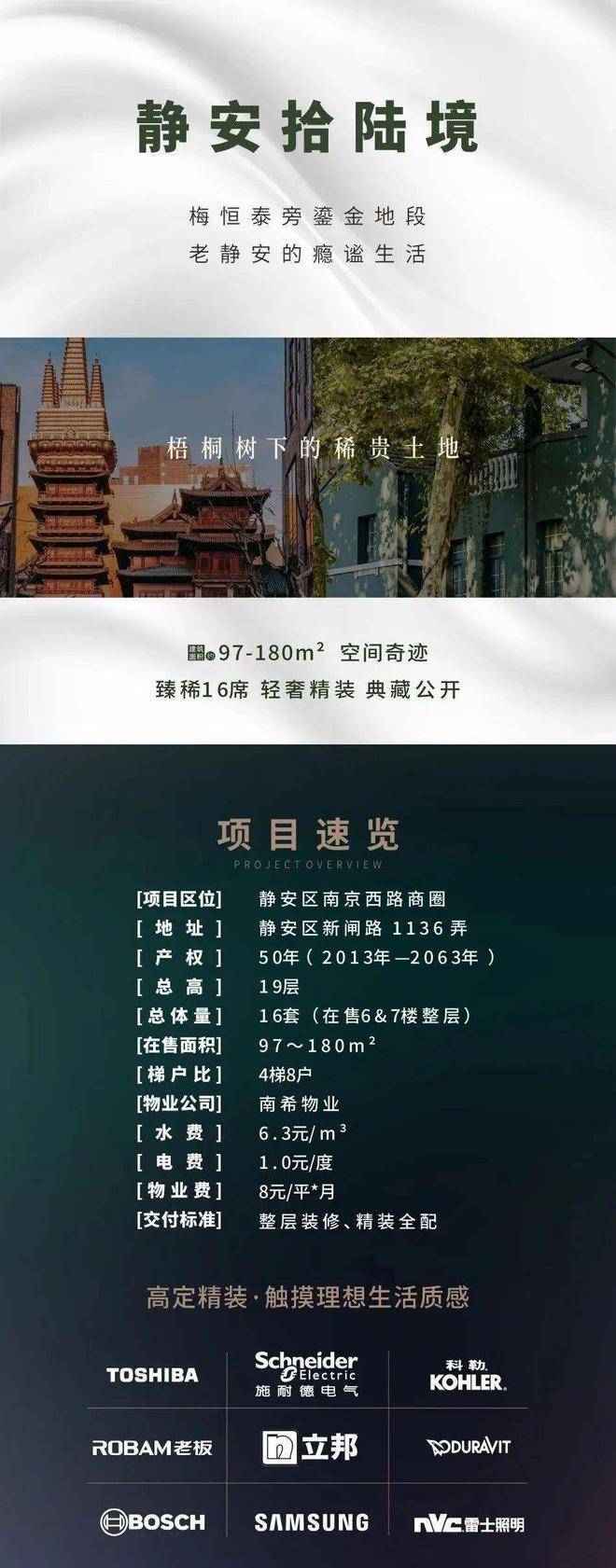 介绍了上海静安拾陸境公寓,位于静安区,是老静安的奢装美寓,面积97-180m²,只有16席,轻奢精装,售楼处电话和微信咨询信息@