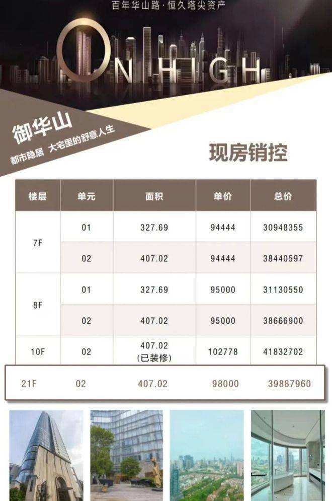 【御华山】仅有52席 大平层顶级公寓,目前只剩下6套!面积在327-407 平米之间,这在传统意义上上海市中心, 实属罕见!