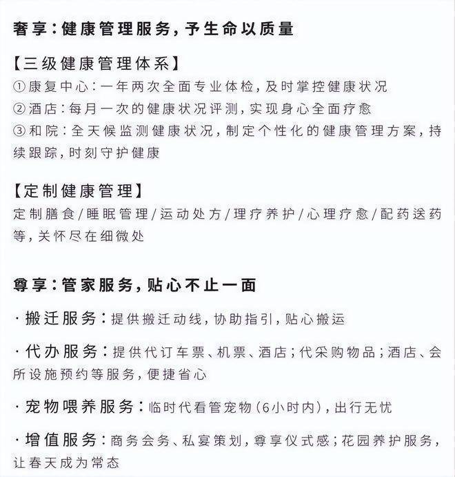 2. 开发实力:天宸股份与仲盛集团联袂,400亩高端社区,配超五星酒店、康复中心,24小时管家服务。现房,豪装交付。