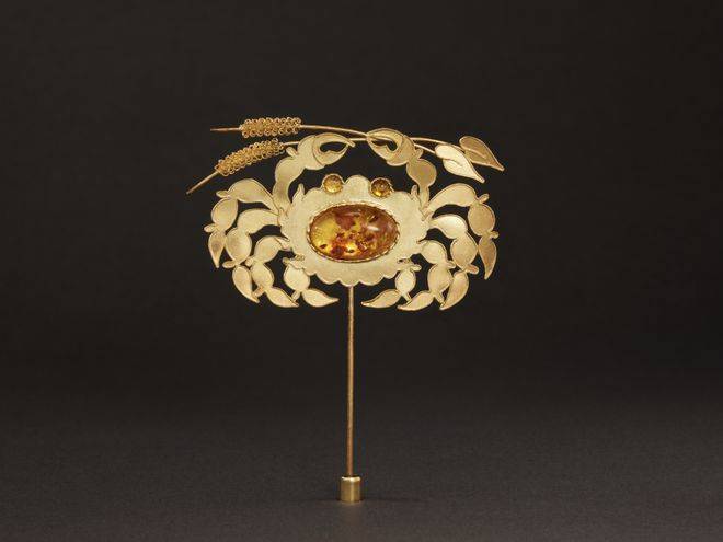 金金对传统工艺的精妙把握,在作品中展现为线条组织的精密性与色彩层叠的逻辑性。银饰花丝的精密结构,绒花的柔和质感,缂丝的通透层次——这些传统匠艺的精髓,被她内化为极具个人特色的艺术语言。