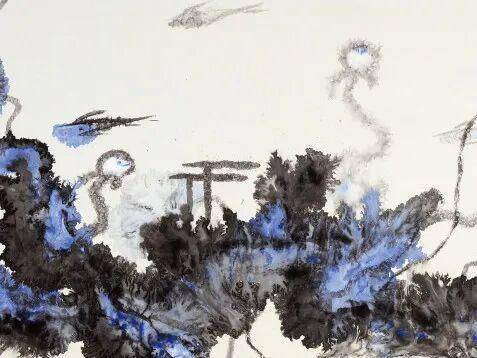 在展厅中,艺术家创造性地延伸了中国画“墨分五色”的传统理念,构建起墨彩交融、张弛有度的视觉节奏。画面中的构图与留白,在绚烂色彩间创造了呼吸的空间。