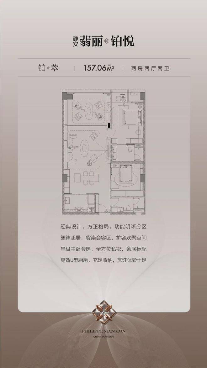【铂萃】建筑面积约157.06㎡丨2房3厅2卫