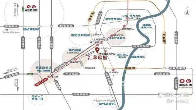 汇萃玖里,坐落闵行与徐汇主城区-交界黄金中环地带!中环上中西路下匝口,虹梅南路与益梅路交汇处、东至虹梅南路(中环高架)南至北潮港、北至益梅路!
