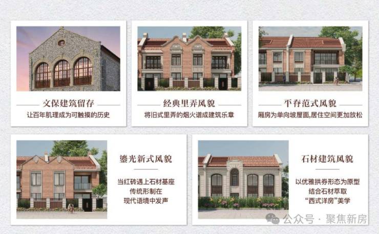 全上海第一个多元化形态风貌别墅新房,五大经典建筑立面复刻百年风貌Art Deco神韵,包括文保建筑留存、经典里弄风貌别墅、平脊范式风貌别墅、鎏光新式风貌别墅和石材立面风貌别墅。