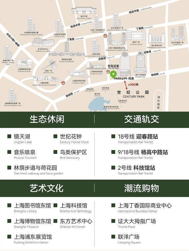 同时,项目与世纪公园的直线距离仅约 300米 ,步行可达这座占地约 140.3公顷 的城央天然氧吧。