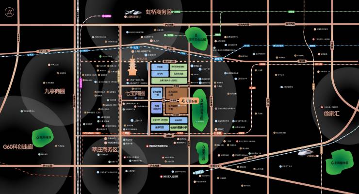 •小交通配套:地铁9号线七宝站、星中路站,地铁12号线虹莘路站、七莘路站,机场联络线七宝站,在建嘉闵线七宝站