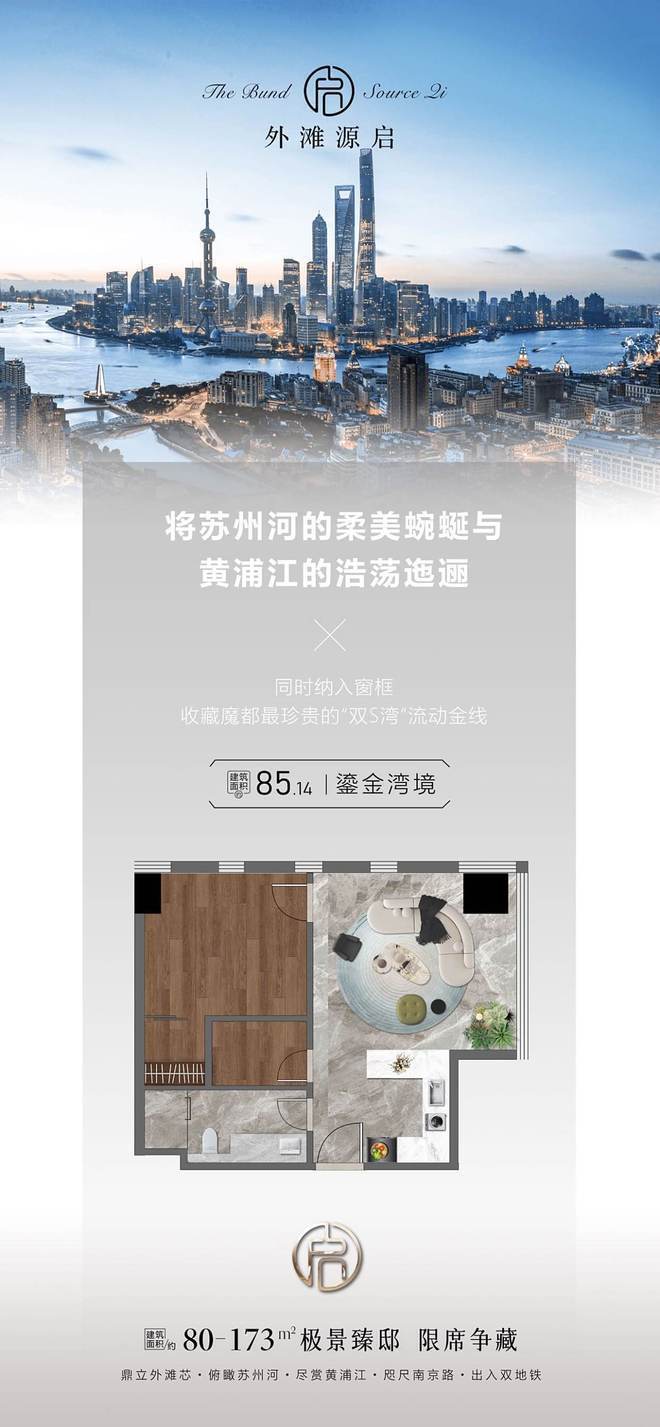 上海外滩源启带阳台全明户型【物资大厦地址】贵启外滩源江景公寓!