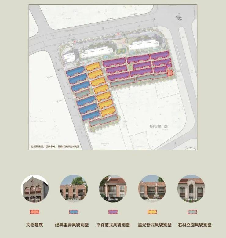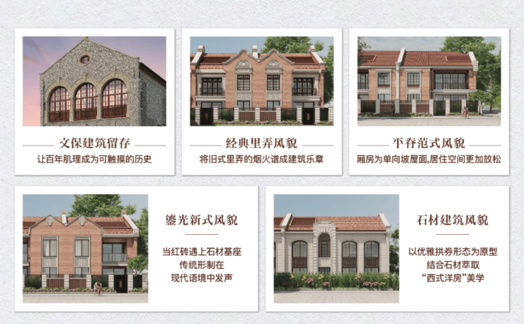项目是全上海第一个多元化形态风貌别墅新房,引入了5大经典风貌建筑制式,让产品立面形态更加多样。
