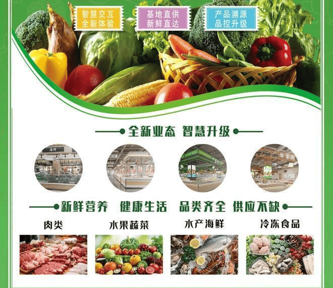 业态分布:净菜、干货、手工、光禽、猪肉、牛羊肉、机面、禽蛋、豆制品、调味、冻品、综合、进口、水果、熟菜、熟食、烘焙、水产、南北货、茶饮、烟酒