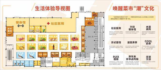 蔬菜、水果、肉类、水产/海鲜 、活禽/蛋类、熟食、调料、医疗健康、餐饮娱乐为一体的综合民生服务中心。