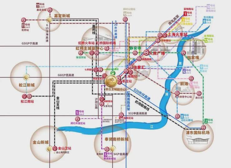 01. 地铁1号线、5号线:20分钟直达徐家汇、30分钟抵达人民广场、陆家嘴、新天地、静安寺等,并可换乘十余条地铁线,通达整个上海;