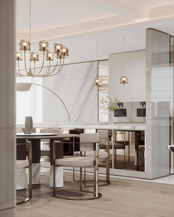 以轻奢为主调,简洁的外表下,隐藏着精致生活的贵族气息,不同材质间的碰撞融合,突显出主人家不凡的品味。