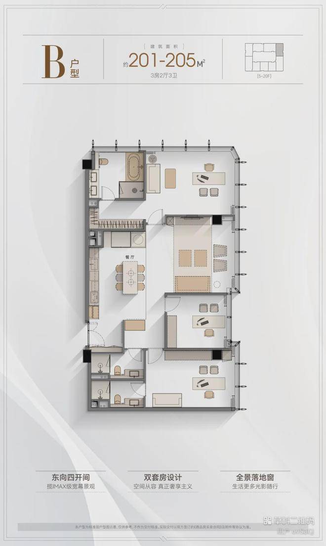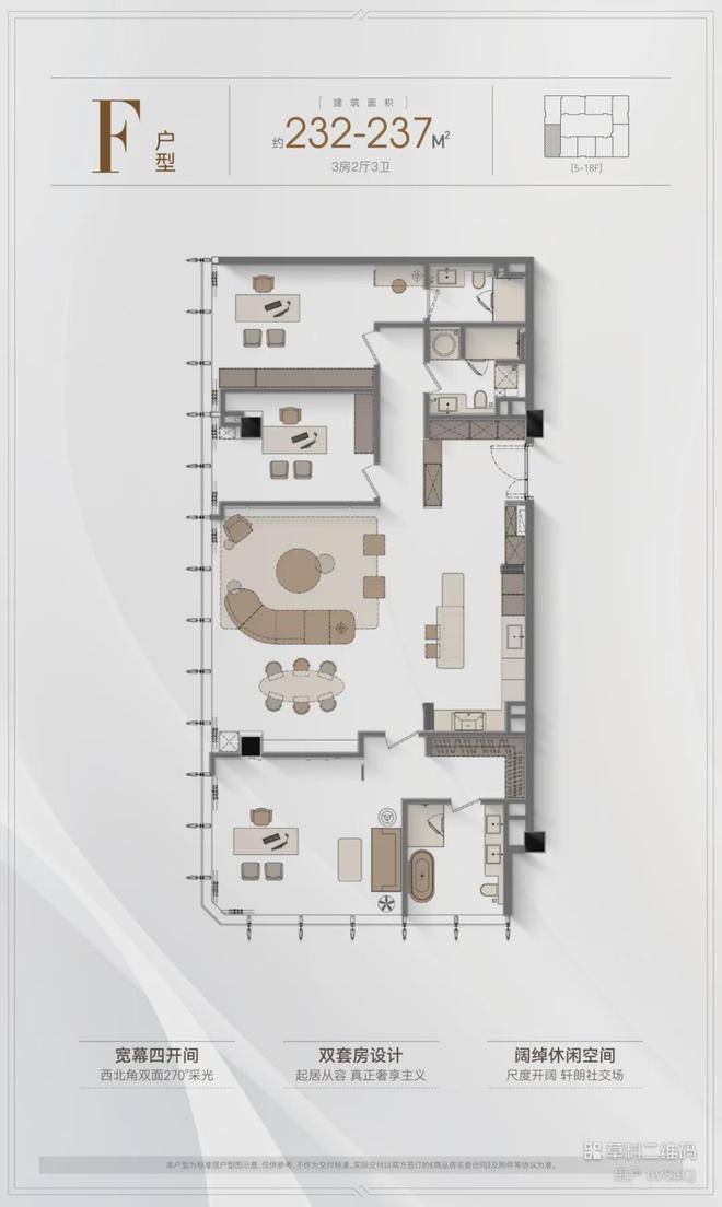 5️⃣户型优势:4.2米层高,全落地窗设计,多套房设计满足三代同堂