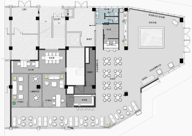 洽谈区在素色氛围的基础上点缀绛红色融合